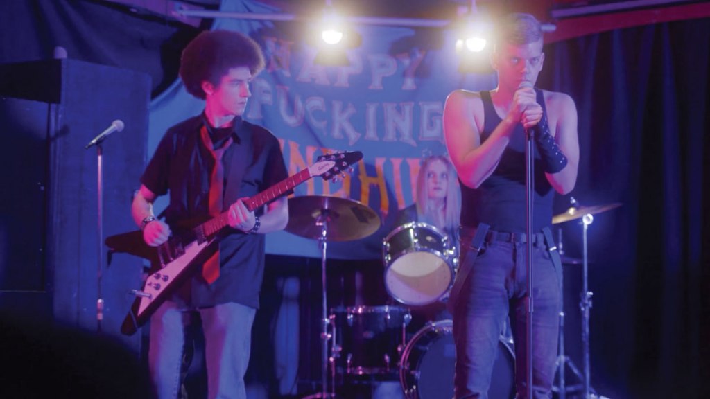 Will (Matt Close) is a high school senior whose already bleak life looks all the more miserable once the mill shuts down, putting his alcoholic father Frank (Lewis Hodgson) on the pogey making their low-income family even lower. Will, like Bill S. Preston, Esq and Ted Theodore Logan before him, knows he can make it – he simply needs a real guitar. His sarcastically-named band, the eponymous Happy FKN Sunshine, is nearly there as well. They need a little refinement. And they need a bass player.